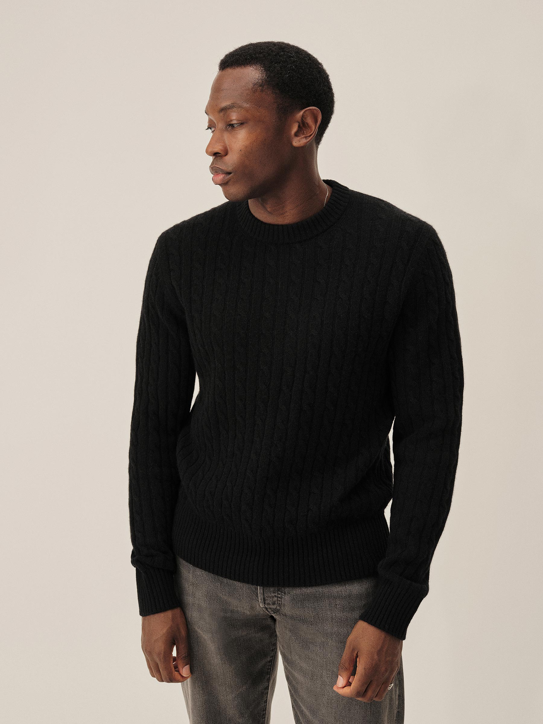 The California Cashmere Cable Crew is spun from 100% long-staple cashmere and knit in a refined 12-gauge cable pattern. Inspired by the casual poise of 1960s Ivy League sweaters, it’s finished with yarn-dyed ribbing at the neck, cuffs, and hem, and garment-rinsed for a soft, lived-in feel.