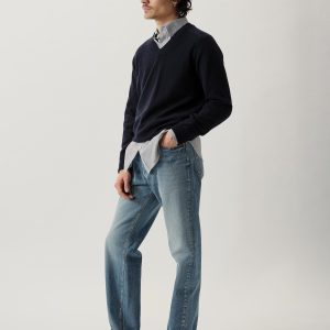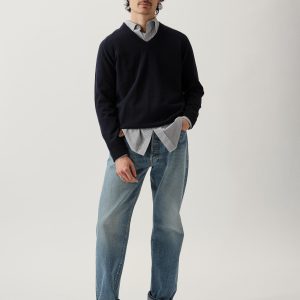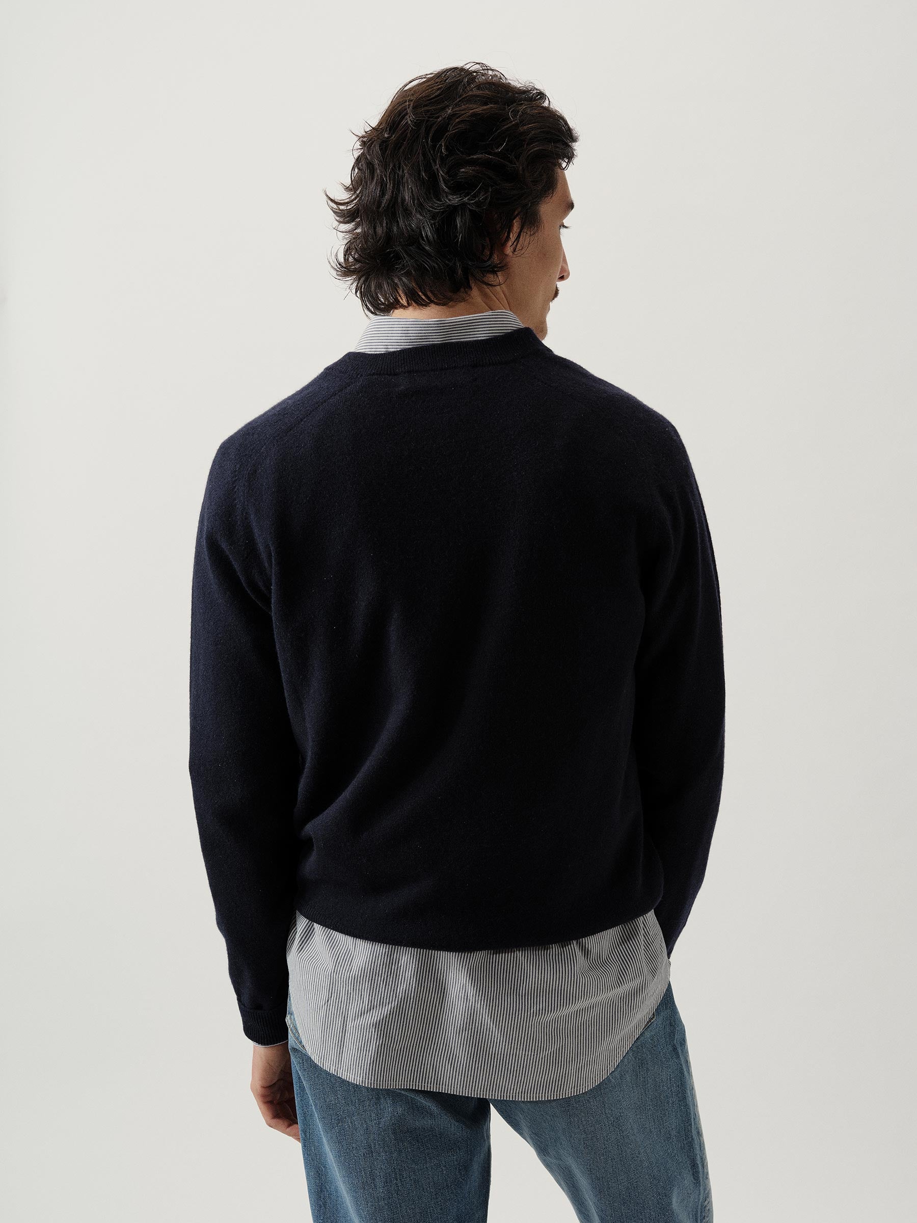 Classic fit long sleeve V-neck sweater in a 12 gauge jersey knit from yarn-dyed long staple cashmere. Fully-fashioned and finished with ribbing at the cuffs, collar, and hem. Constructed with hand-linked seams for durability.