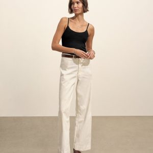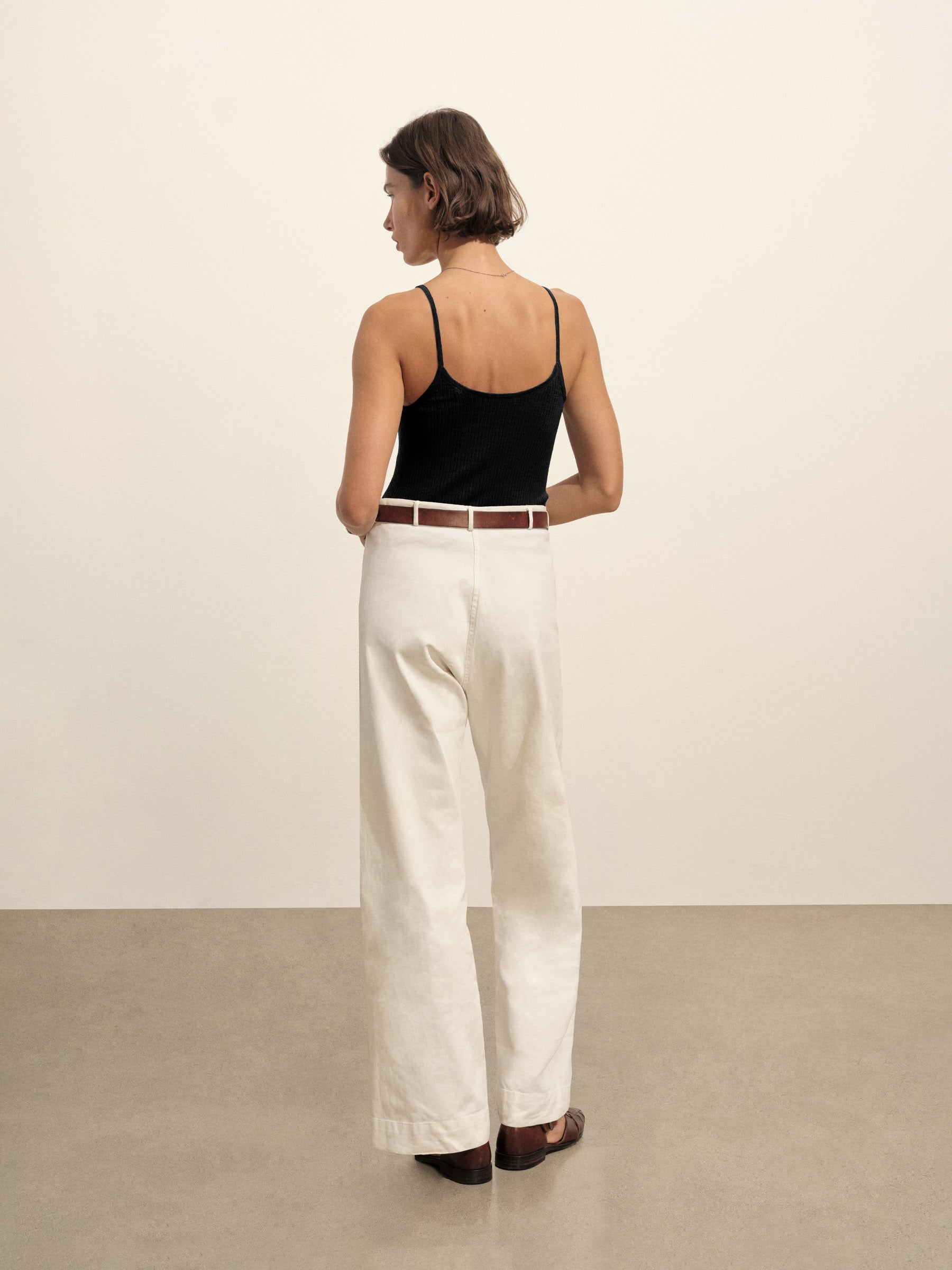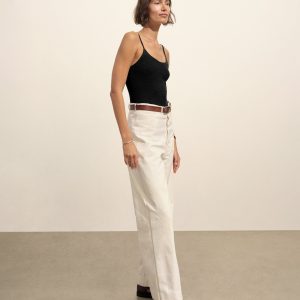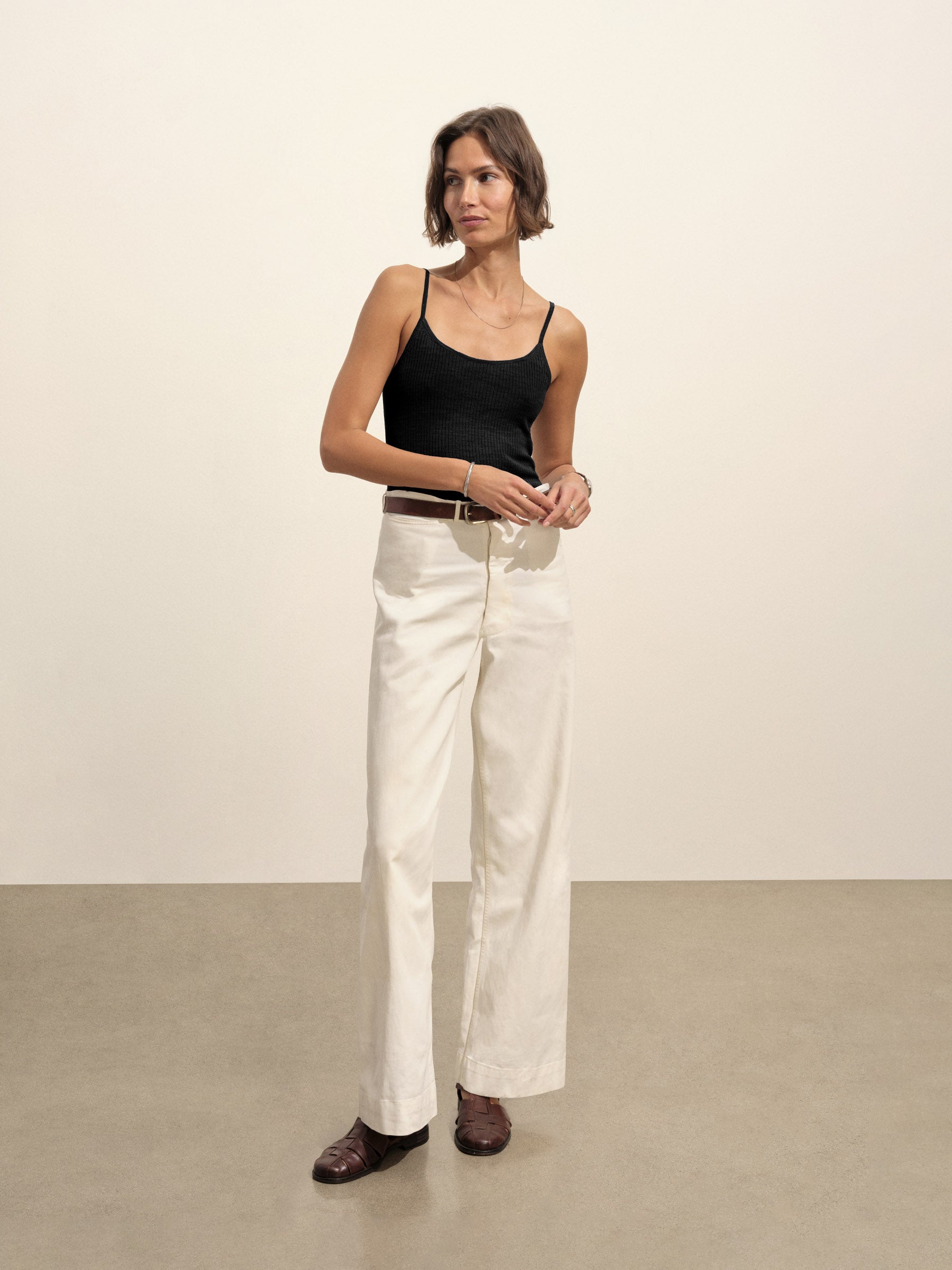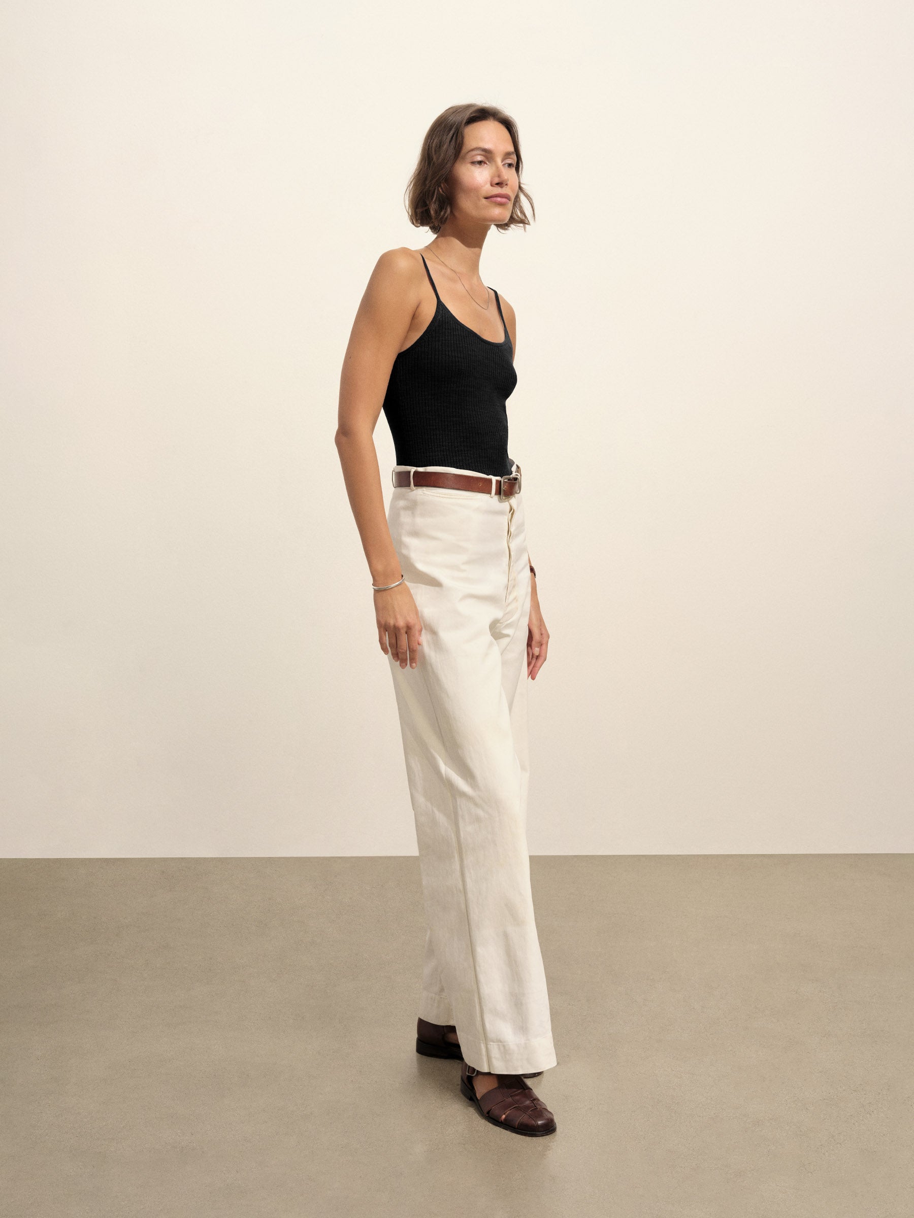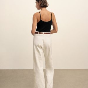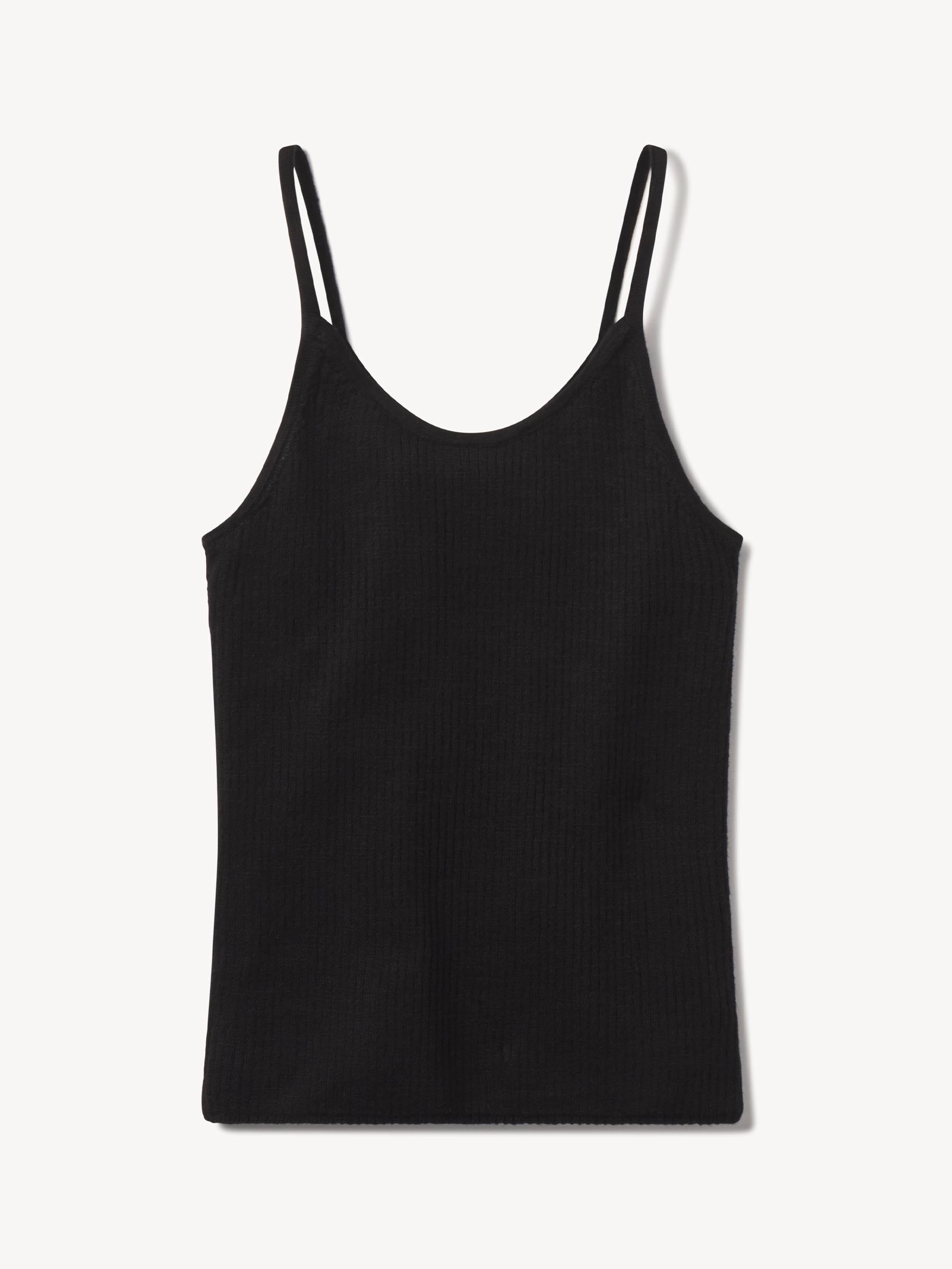 Slim fit, vintage-inspired camisole crafted from a delicate blend of Italian cotton and linen. Constructed from a structured 4×2 rib with a textured hand and a touch of stretch. Garment washed for vintage look and feel.