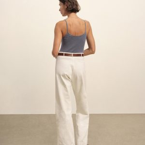 Slim fit, vintage-inspired camisole crafted from a delicate blend of Italian cotton and linen. Constructed from a structured 4×2 rib with a textured hand and a touch of stretch. Garment washed for vintage look and feel.
