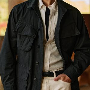 Raglan-sleeved overcoat inspired by WW2 military trench coats with full canvas construction in a classic fit designed for layering and engineered to fit a wide range of body types. This rich textured handwoven Donegal tweed is hearty and resilient, providing substantial warmth while remaining breathable and moisture-wicking. Details include full bemberg lining and genuine horn buttons, two patch-and-flap pockets at hip, two interior welt pockets, a button front closure, a button-through center back vent and buttoned sleeve tabs.