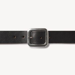 A classic dress belt made from 100% vegetable-tanned steerhide, padded with a soft nubuck lining. Finished with a solid metal, hand-burnished chrome buckle that will develop a rich patina over time. Perfect for dressing up denim or pairing with tailored looks. 1″ wide. Standard fit — take your usual belt size.