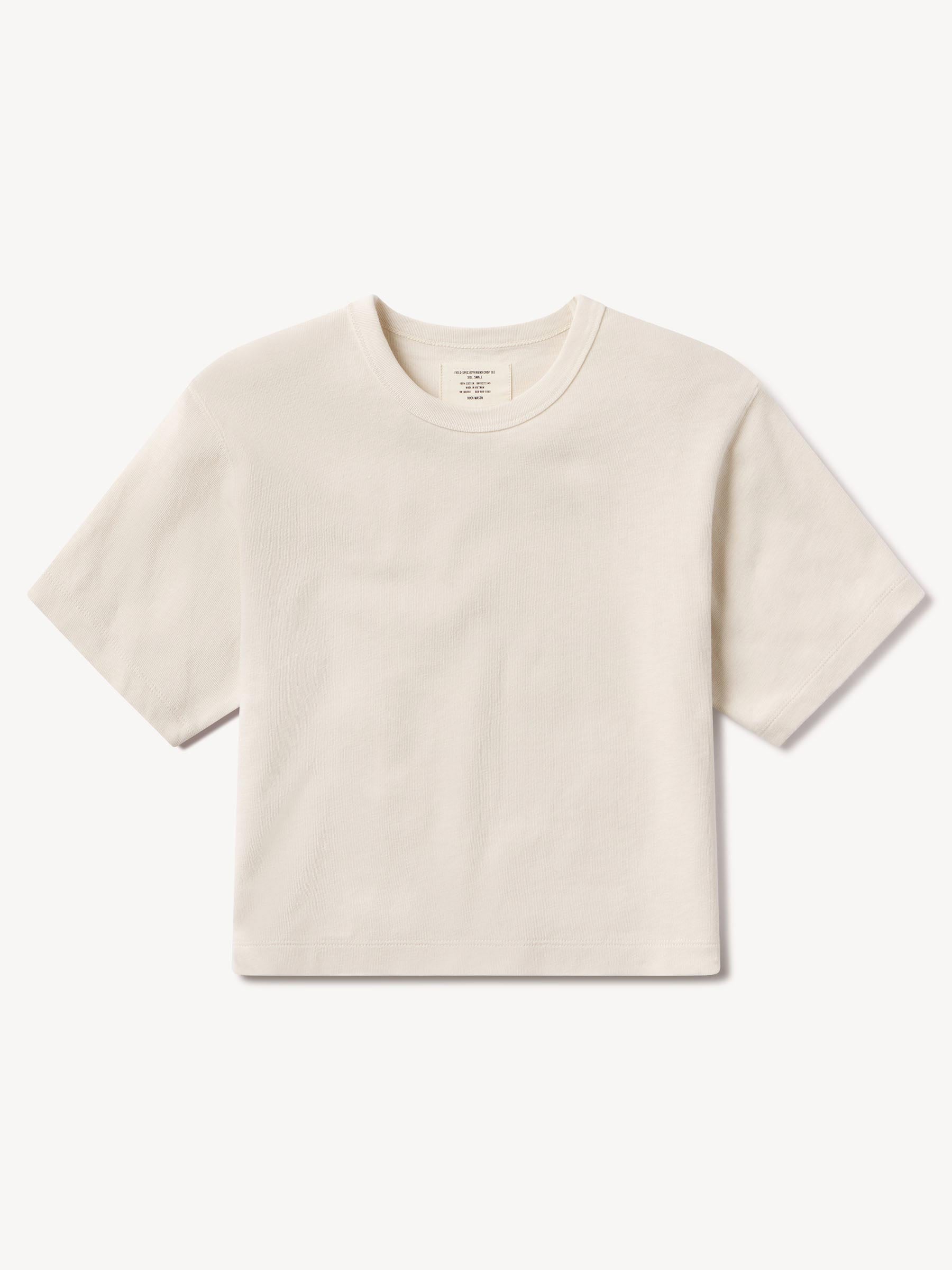 Cut from a heavyweight 310 GSM cotton, this slightly oversized, boxy crewneck tee has a straight hemline that hits right at your natural waist. Double-washed for a soft, smooth texture and consistent fit.