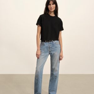 Cut from a heavyweight 310 GSM cotton, this slightly oversized, boxy crewneck tee has a straight hemline that hits right at your natural waist. Double-washed for a soft, smooth texture and consistent fit.