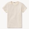 Slim-fit, vintage-inspired V-neck tank crafted from 100% Italian cotton yarn with a 3×3 deep rib structure. Designed with concealed chain threads and snaps beneath each shoulder to keep bra straps in place. Garment washed for a truly vintage, broken-in feel.