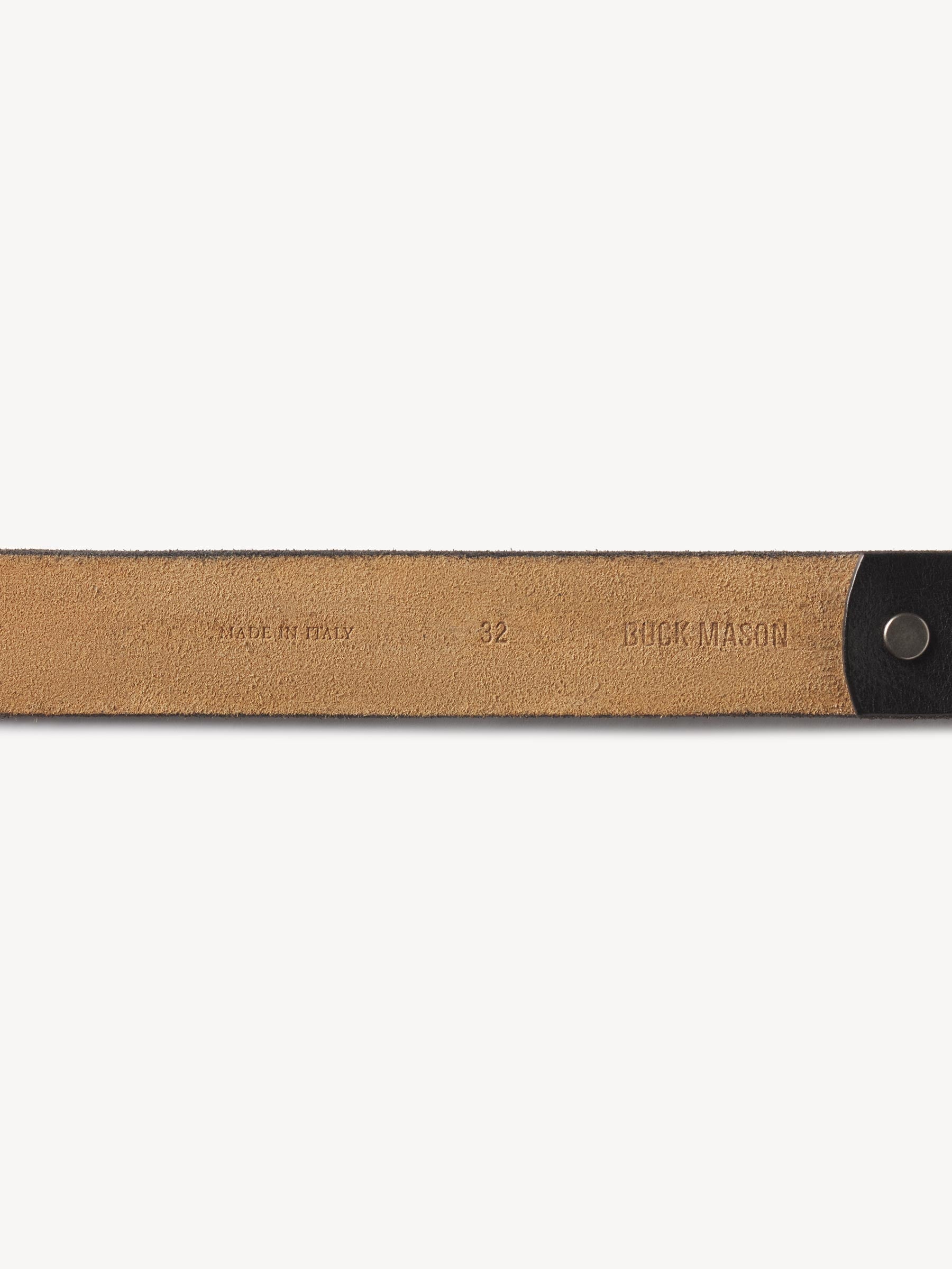 An American classic with military roots. Inspired by garrison belts worn in service uniforms, it’s built from durable, full-grain leather with a subtle, distressed finish. Designed with a snap closure and a removable buckle for easy customization. The hardware is intentionally unfinished and unlacquered, meant to develop a rich patina over time.