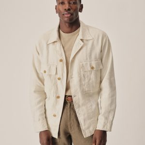 A full fitting fatigue overshirt cut from loose knit mid-weight linen. Details include a vintage-inspired point collar, bellows pocket, and flat-felled double needle seams, which is the same construction we use on our jeans. We sourced larger-than-average flax fibers configured in a loose weave, which gives this shirt a subtle grain and lightweight feel.