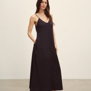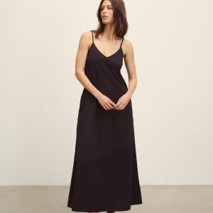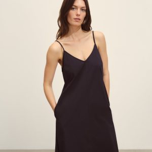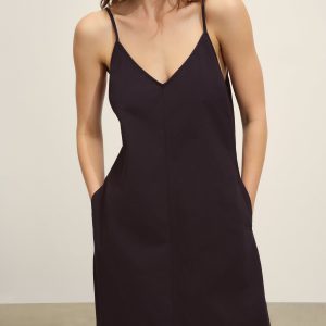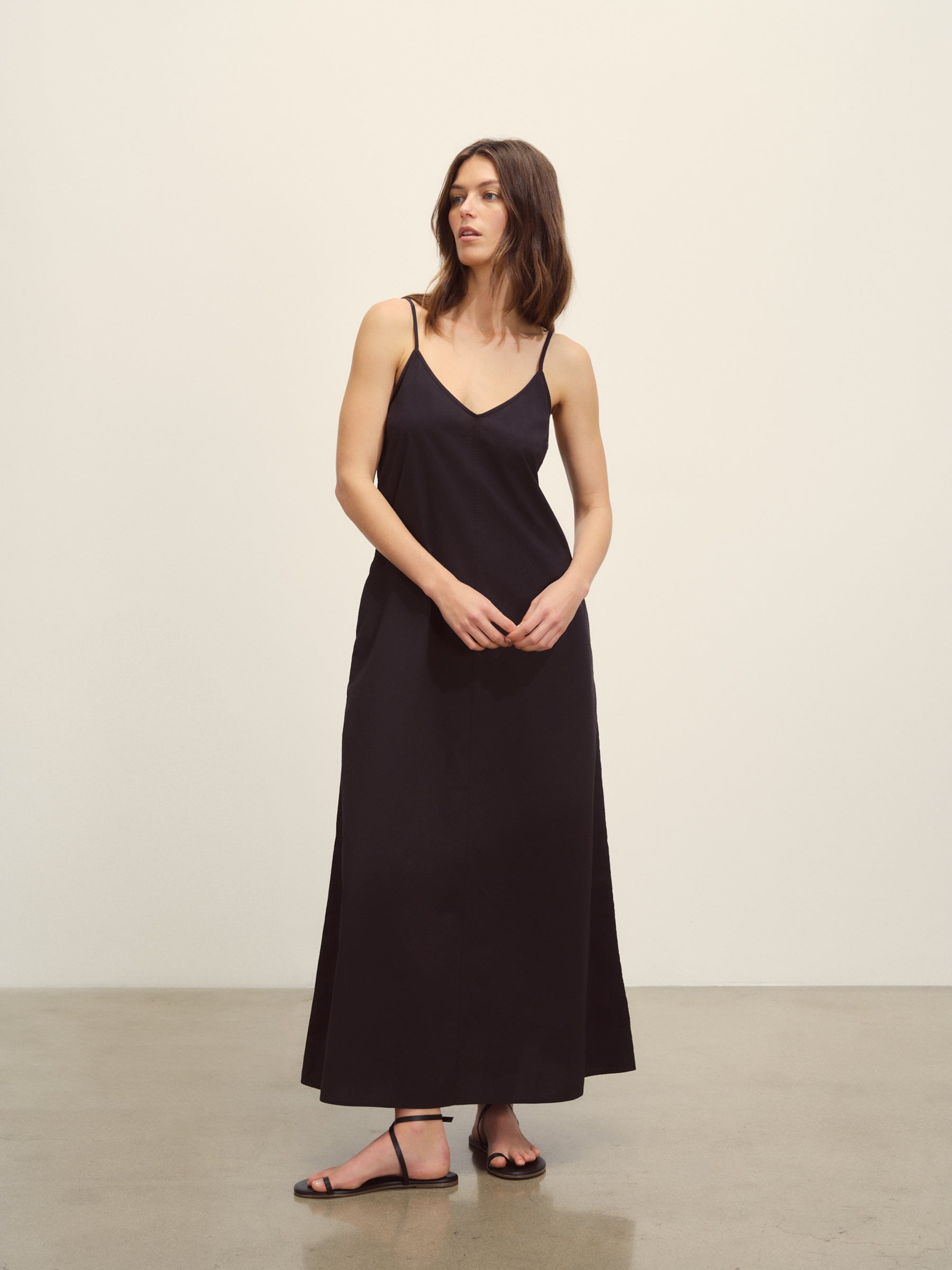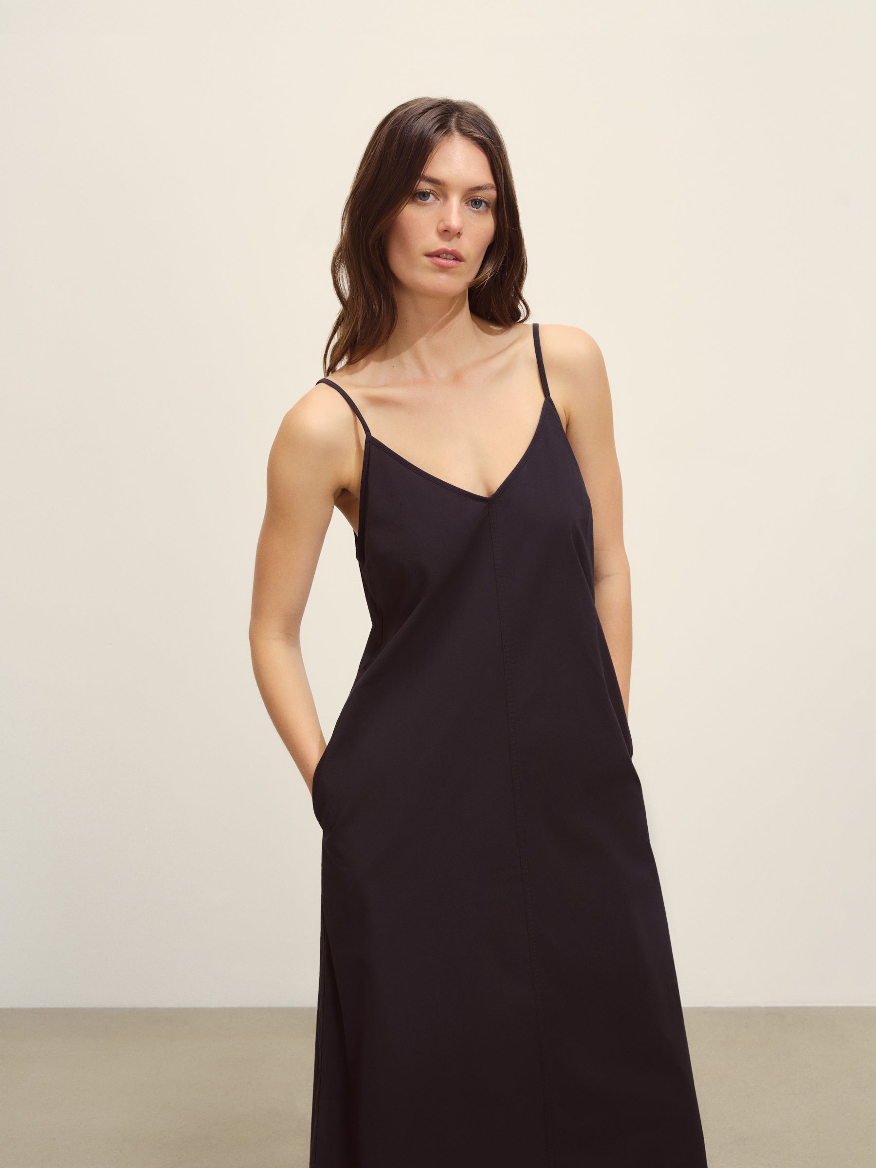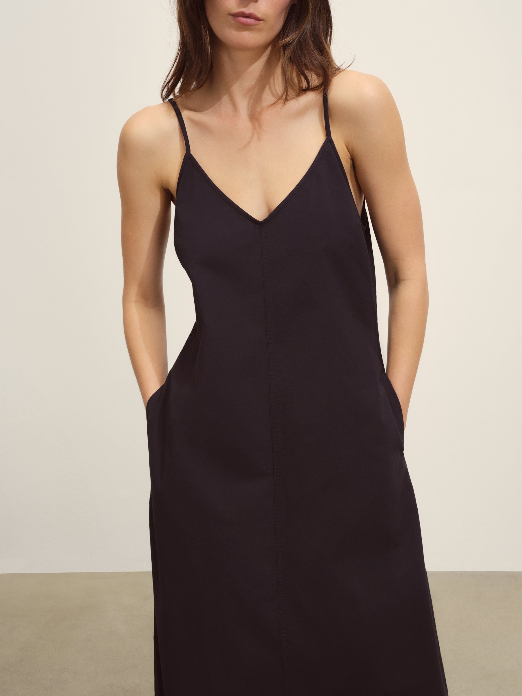 Relaxed slip dress in a 3.7 oz. plainweave cotton with a subtle luster and an easy drape that hits above the calf in a 45.75” length. Features adjustable straps and on-seam pockets. Size down for a more fitted silhouette. Garment washed for a lived-in feel.
