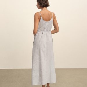 Relaxed slip dress in a 3.7 oz. plainweave cotton with a subtle luster and an easy drape that hits above the calf in a 45.75” length. Features adjustable straps and on-seam pockets. Size down for a more fitted silhouette. Garment washed for a lived-in feel.
