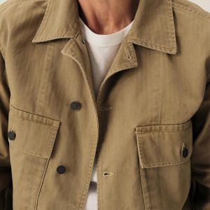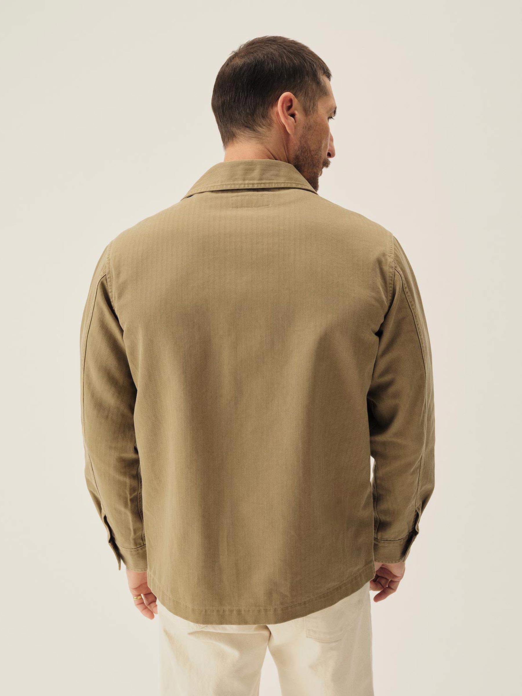 Our homage to WW2-era military style fatigues, cut in a true-to-original relaxed fit designed for range of motion with room to layer underneath. This lightly structured 9.4 oz.cotton twill has a herringbone weave and has been garment washed for a lived-in feel. Features two large bellows front pockets, a back yoke panel for mobility, felled seams, button-front closure, single-button cuffs, and 13-star tack buttons — all inspired by the original WW2 model.
