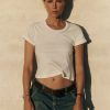 Boxy short sleeve crewneck tee with a straight hem. Cut from 120 GSM Supima cotton. Constructed with rib neck binding and double-needle cover-stitching at the hem. Garment washed for a lived-in feel.