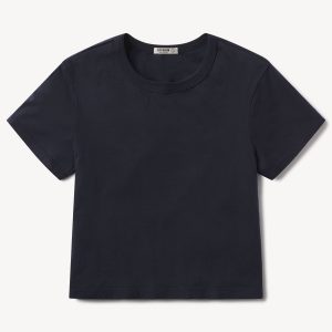 Boxy short sleeve crewneck tee with a straight hem. Cut from 120 GSM Supima cotton. Constructed with rib neck binding and double-needle cover-stitching at the hem. Garment washed for a lived-in feel.