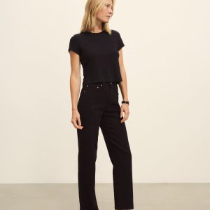 Boxy short sleeve crewneck tee with a straight hem. Cut from 120 GSM Supima cotton. Constructed with rib neck binding and double-needle cover-stitching at the hem. Garment washed for a lived-in feel.