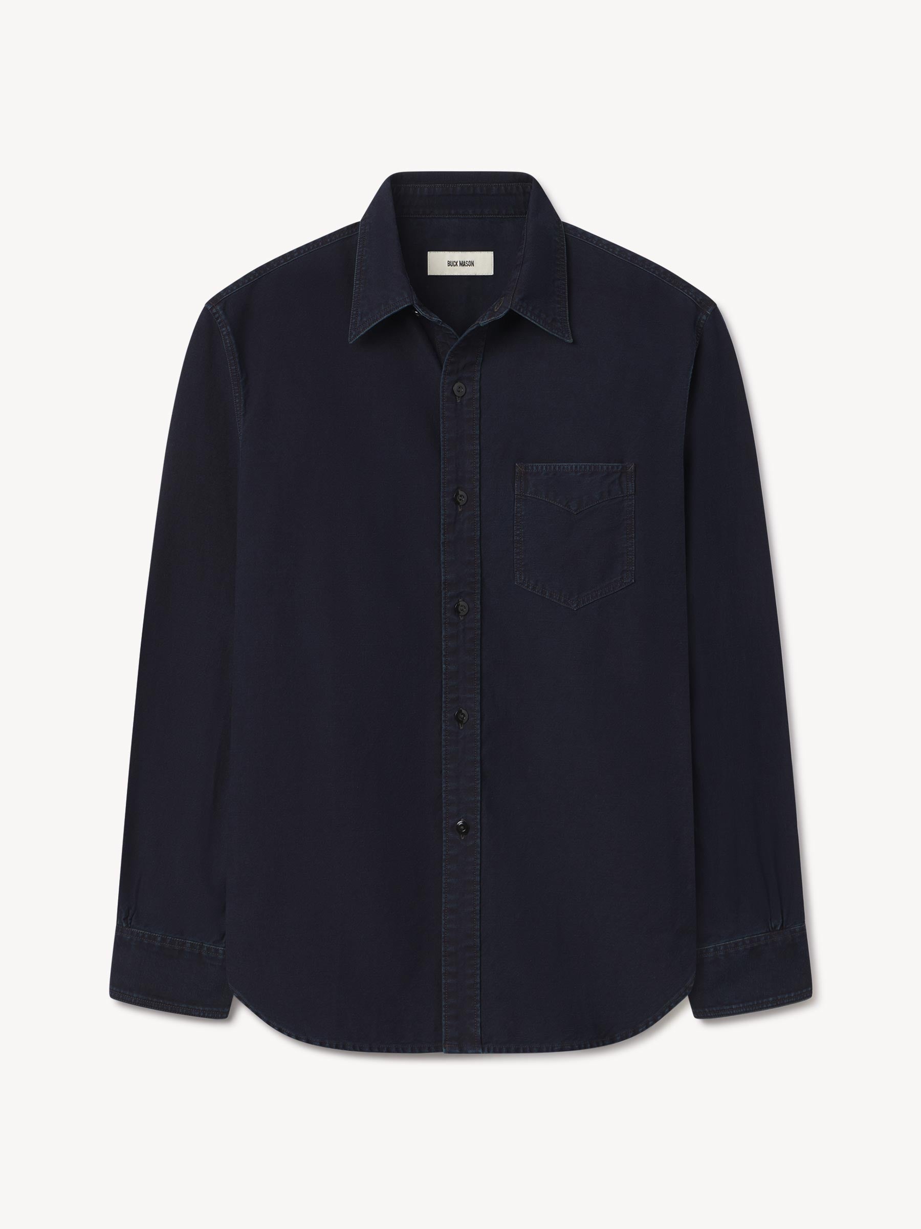 We reimagined a miner’s shirt from the 1930s in lightweight cotton sateen. After washing it for a well-worn feel, we put it through a specialized dye process to throw an accent on the seams while preserving the deep indigo hue. A trim fit and Western yoke complete this vintage-inspired piece.