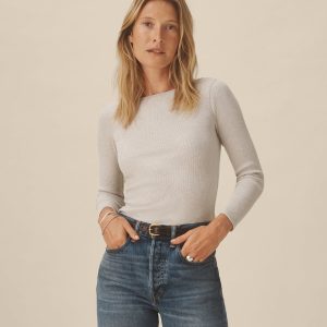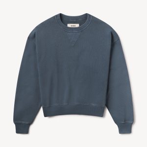 1960s inspired crewneck sweater with an easy, slim fit. Crafted from 7-gauge waffle knit yarn-dyed cotton with a light slub texture, featuring fashioning at the neck and drop-back shoulders as a nod to mid-century.