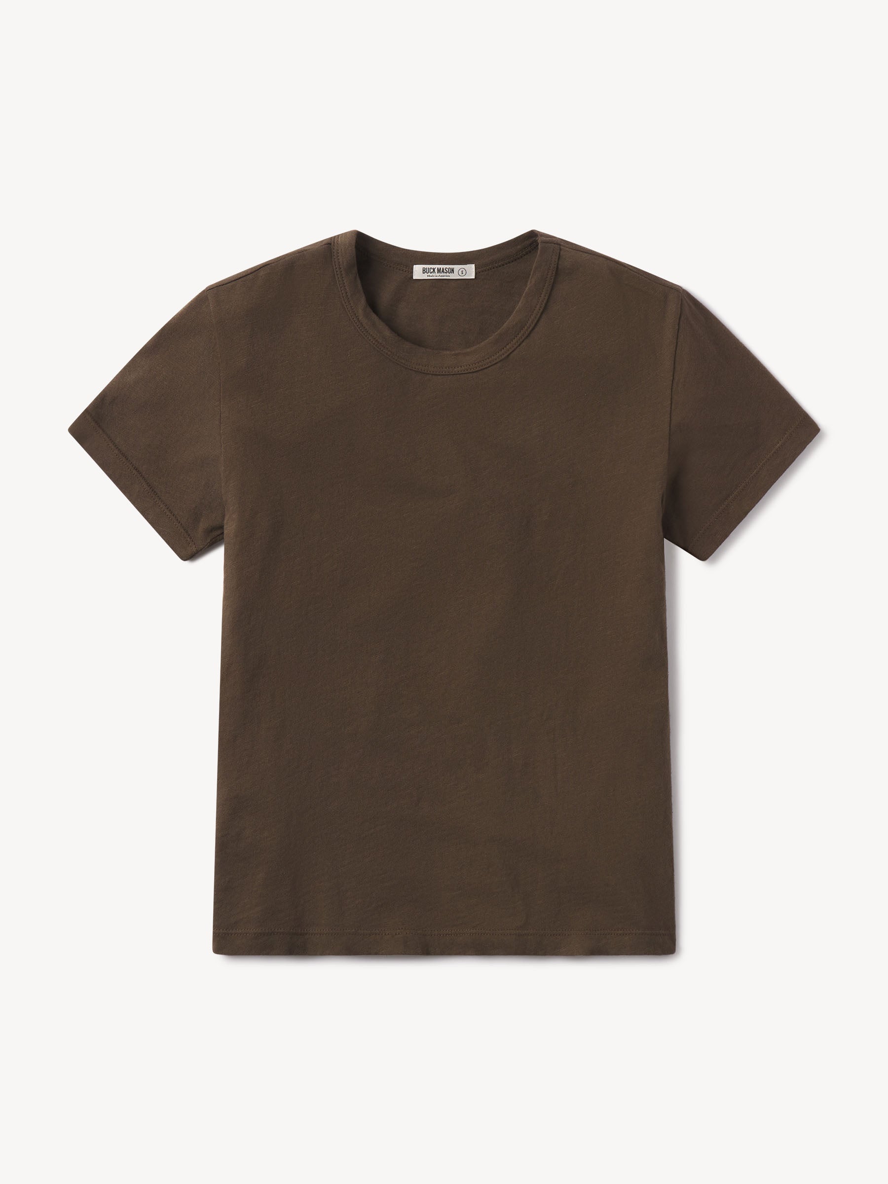 Classic fit short sleeve crewneck tee with a straight hem, cut from 125 GSM cotton with light slub texture. Constructed with self neck binding and ladder stitch detailing at the hems. Garment dyed and washed with softener for a lived in feel.