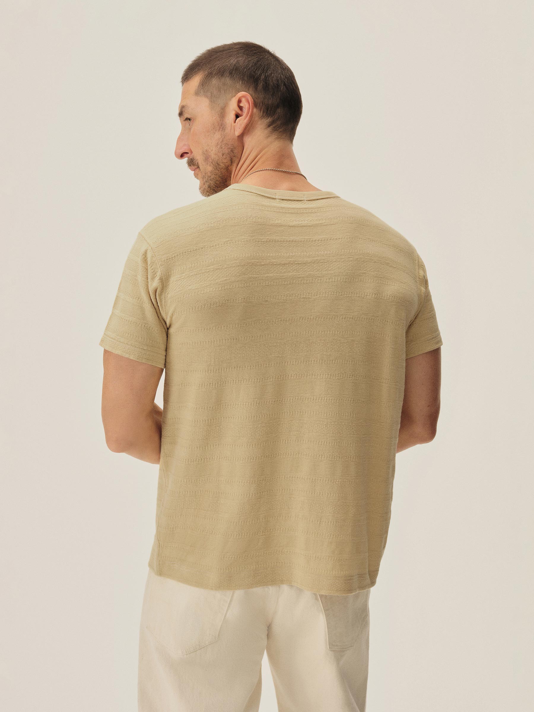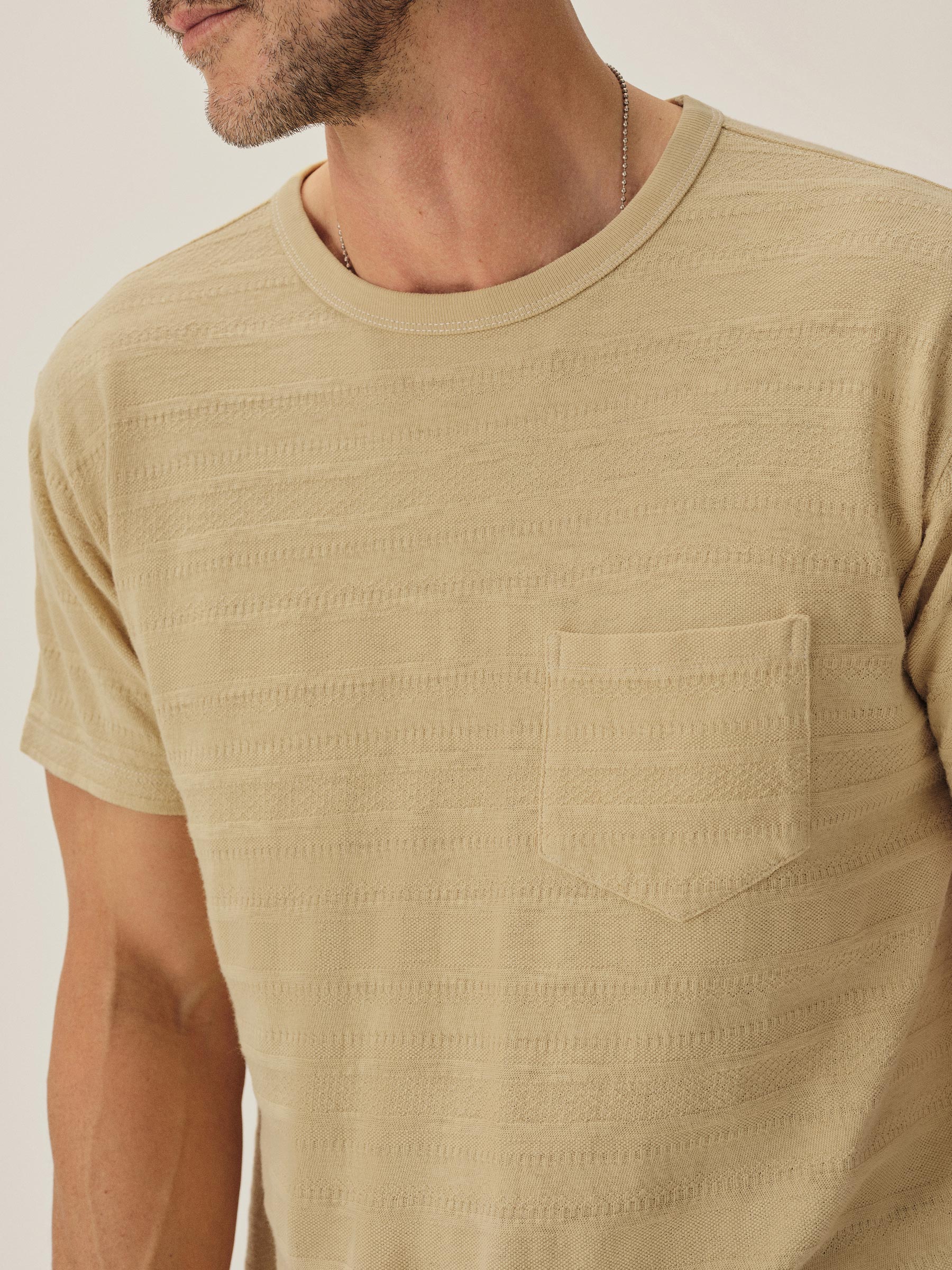 Classic fit short sleeve crewneck tee with a straight hem and patch chest pocket. Cut from a midweight cotton with tonal jacquard patterning. Garment washed for a lived-in feel.