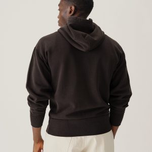 A midcentury-inspired hooded sweatshirt made from plush, not-too-heavy, not-too-light, welterweight French terry. Features a double-layer hood and kangaroo front pocket.